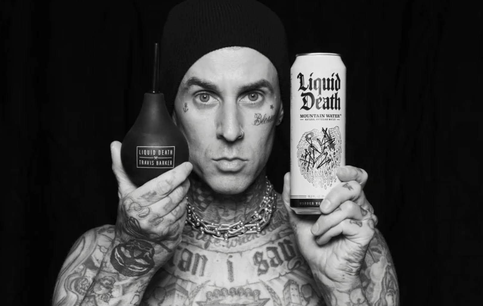 Introduce the world to Liquid Death’s new ambassador: Travis Barker, Blink 182 drummer.